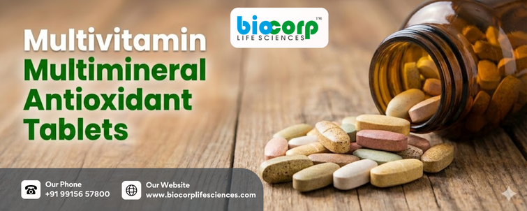 Multivitamin Multimineral Antioxidant Tablets by BiocorpLifeSciences are an essential supplement for maintaining overall health, boosting immunity, and preventing nutritional deficiencies. By combining vitamins, minerals, and antioxidants, they provide complete nutritional support and protect the body from oxidative stress.