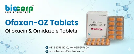 Ofaxan-OZ Tablets by Biocorp Life Sciences contain Ofloxacin 200 mg and Ornidazole 500 mg in each film-coated tablet. This fixed-dose combination is specially designed to tackle mixed gastrointestinal infections where both bacteria and protozoa are involved. You get dual action in a single tablet, which means faster recovery and fewer pills to remember. Biocorp Life Sciences regularly shares such helpful information on the blog so healthcare professionals and patients stay updated with the latest developments.